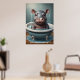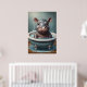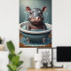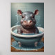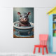 Cute adorable animals sitting in a bathtub, with water droplets and bubbles around it. The artwork image looks at the viewer with wide, innocent eyes, and its little feet rest on the edge of the tub. The overall atmosphere is cute and humourous, making it ideal for a poster set.