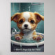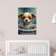 Cute adorable animals sitting in a bathtub, with water droplets and bubbles around it. The artwork image looks at the viewer with wide, innocent eyes, and its little feet rest on the edge of the tub. The overall atmosphere is cute and humourous, making it ideal for a poster set.