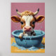 Cute adorable animals sitting in a bathtub, with water droplets and bubbles around it. The artwork image looks at the viewer with wide, innocent eyes, and its little feet rest on the edge of the tub. The overall atmosphere is cute and humourous, making it ideal for a poster set.