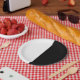 Split black and white halloween party plate