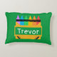 Bold and colourful personalised accent pillow for kids is great for bedrooms, playrooms and homeschooling areas.  Design features a split crayon box with room to personalise with child's name in centre,  on green background.