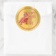 Beautiful split image showing a Chinese Lion Dance on the left and transparent words Happy Lunar New Year on the right. The red outline of the words matches the red lion dance which is symbolic of fortune, happiness and prosperity. Printed on a bright golden foil-like background, this sticker gives a modern and trendy twist to the traditional Chinese New Year greeting.