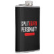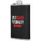 The flask itself is fine. It’s a cheap flask, obviously bought in bulk, however am prepared to overlook that. Given that it is a personalized item, I would have liked to have seen gift boxing instead of the generic packaging. Terrible printing, and/or quality. It’s a cheap, tacky vinyl. It is not cut straight and is also applied in a way that it is overhanging the bottom, causing the glue to catch on items and it will eventually roll and tear, damaging the wrap.