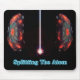 A fractal representation of an atomic nucleus being split by a high-energy particle. Text reading, "Splitting The Atom" appears in glowing blue and white.