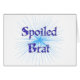 You're a brat and proud of it so show it off with this fine starburst design in light blue with a purple flowered lettering that says "Spoiled Brat."