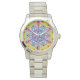 This Kaleidoscope Watch serves as a mandala for meditation, a focal point for the imagination, and as a functional timepiece. Kinetic Collage kaleidoscope compositions are created from special effects performance art screen capture images. Each unique image’s name is based on some special characteristic of the composition, or on whimsy. If you gaze at this Kaleidoscope Watch  long enough, time will stand still. Brilliant colours paint the screen in projected syncopation. Exotic shapes shift and careen, spinning vision with sensation. A crazy scene and that’s a fact. Making sense seems out of reason. But when you snap a slice intact — there’s potential for cohesion. Copy and paste it, flip and seal. Repeat until the arc’s complete. Construct it so it will reveal a bright kaleidoscopic treat. Thus from chaos, a balanced form. Perfect in pleasing symmetry. If only life would so conform, we all could live in harmony. Please note: If you wish to have any Zazzle product imprinted with one of my arts, let me know your preferences and I’ll make it happen. I can be reached at; Greg Lloyd, Kinetic Collage, kineticcollage@cox.net, or http://www.greglloydstudios.com     All greg_lloyd_arts store arts, images and descriptive text copyright Greg Lloyd 1967-2012