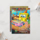 Bold, colorful text elements are arranged throughout the design, highlighting the birthday child’s name, age, date, time, address, and RSVP details. The overall style is whimsical, energetic, and inviting—perfect for a kids’ birthday party invitation, printable card, or digital party announcement.