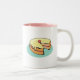 Simple graphic illustration of a tasty victoria sponge cake filled with jam and topped with icing and a cherry. Image available on various gifts and products. Mugs.
