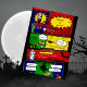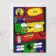Celebrate your halloween spooktacular party bash in style with this aesthetic fun and scary modern comic story book. The invitation is colourful and tells a retro comic story invitation with speech bubbles. It shows a story with cat, spider, bat, candles, ghost, scary hand, screaming ghost. Personalise it with your details, your monogram for your extraordinary cartoon celebration.