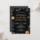 A Spook-tacular birthday party invitation featuring Halloween elements in black and orange - a perfect design to celebrate the occasion.