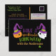 Have a Spooktacular Halloween with Personalised Postcard Invites- Modern Halloween Décor with a fun Cute Ghost & Jack-o-lantern witch hat design. With fun modern hand-lettered fonts in Purple, green, and Orange. Happy Halloween!