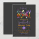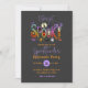 Design features traditional Halloween colours of black, grey, orange, and purple. Full of Halloween symbols, spiders, ghosts, bats, and black crow.