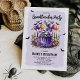 Step into a unique Halloween birthday party with our lively kids' invitations! Our invites feature a whimsical light purple rustic backdrop, a hauntingly delicious skull cake, playful balloons, glowy candles, and mystic flying bats. What's more? You get to personalise your invites with our modern text template, making your party as memorable as it can be.