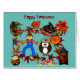 A Halloween card that features. scarecrows, owls and pumpkins, Fall foliage and colours of Fall