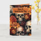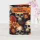 These spooky skulls are surrounded by a variety of fall flowers. This card has has an area inside for you to add your own message.