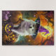 Spooky American Eskimo Halloween Witch and Pumpkin Jigsaw Puzzle