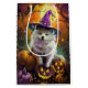 Embrace the Halloween spirit with this enchanting design featuring a cute dog in a witch hat surrounded by carved pumpkins. Perfect for adding a touch of spooky charm to your festive celebrations.