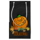 Happy Halloween Pumpkin T-shirts and gifts feature our original digital art of a cute jack-o-lantern sitting in a pile of colourful fall leaves. With the words beneath, Happy Halloween, these fun pumpkin gifts will be a big hit this fall for anyone who loves Halloween, fall weather, pumpkins, jack-o-lanterns, and trick or treating. Drink hot cocoa, hot apple cider, or pumpkin juice from a fun jack-o-lantern mug, trick or treat with a fun pumpkin tote bag and much more.