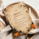 A warm and atmospheric design inspired by autumn nights, featuring rustic textures and seasonal elements such as pumpkins, lanterns, bare branches, and a glowing moon. Subtle vintage tones and soft lighting create a mysterious yet cosy ambiance, while details like bats and delicate foliage enhance the storytelling. The composition blends rustic charm with a slightly eerie, whimsical aesthetic, resulting in a unique and memorable seasonal design.