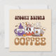 Start your haunted mornings right with this playful greeting card featuring the phrase “Spooky Before Coffee.” A ghost-shaped coffee brew floats front and centre, capturing the mood of every caffeine-craving ghoul before their first sip. A perfect blend of spooky and relatable, this design brings Halloween humour to your everyday coffee routine.