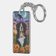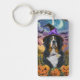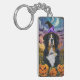 Spooky Bernese Mountain Halloween Witch Pumpkin Key Ring