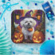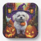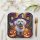 Spooky Bichon Frise Halloween Witch And Pumpkin Paper Plate