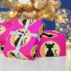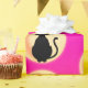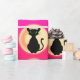 Black Spooky cat green eyes with moon on hot neon pink purple background