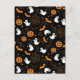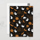 Whimsical Halloween pattern filled with playful pumpkins, mischievous ghosts, fluttering bats, and twinkling stars.