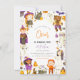Invite family and friends for a spooktacular time with these cute Halloween birthday party invitations. This design features a hand-painted border of fun Halloween characters, there are kids in costumes, black cats, bats, smiling pumpkins, ghosts, a dancing skeleton, a mummy, spiders, balloons, stars, magic potions, a heart-eyed skull, a flying broomstick, candy corn and more! Inside the frame, the birthday boy's name appears in big script hand-lettering, with her age and party details below in elegant typography. The colour scheme for the text is a classic Halloween palette: orange, purple, grey, and black! Cards reverse to a pastel orange colour. We have chosen "FIVE" for the template age, but these cards are great for a first birthday party or kids of any age! To customise, simply click on "Personalise this template" and edit the text to feature your own celebration information! If you have any questions, please don't hesitate in reaching out - I'll be happy to help! Just note that I cannot modify an existing order. Browse the collection above or visit my store for more Halloween-themed birthday party invitations.