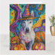 Spooky Bull Terrier Halloween Witch And Pumpkin Card