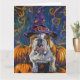 Spooky Bulldog Halloween Witch And Pumpkin Card