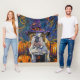 Spooky Bulldog Halloween Witch And Pumpkin Fleece Blanket