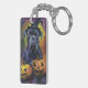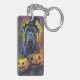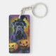 Spooky Bullmastiff Dog Halloween Witch And Pumpkin Key Ring