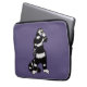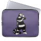 Spooky cat laptop sleeve with an ink drawing depicting a strange black and white striped kitty with long neck holding a skull mask. Seems one of his gloves is out and his skeleton hand shows from its sleeve. Gets me wondering whether it is a lot more of a creepy creature than it pretends to be on Halloween.