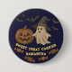 Featuring cute ghosts, candy, bats, and pumpkins in soft orange and purple tones, this button is ideal for: