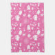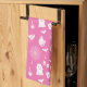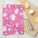 Spooky cute pink Halloween kitchen decorative towel with a white silhouette pattern .