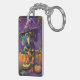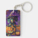 Spooky Dachshund Dog Halloween Witch And Pumpkin Key Ring