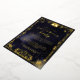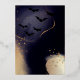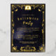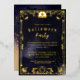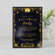 Spooky Halloween party foil invitation. The design features our own hand-drawn holistic Halloween tarot card in gold foil. The design is created with intricate and decorative Halloween details. The background features a bold navy blue and gold design with twinking faux gold stars. Customise with your monogram, event details, and time. The reverse side features a bold navy blue ink background with faux gold accents along with bat elements. Designed by Moodthology Papery.