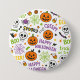 Show off your spooky spirit with this adorable Halloween-themed button! Featuring a vibrant pattern of smiling pumpkins, cheerful skulls, spiderwebs, candy, stars, and playful Halloween words like “Trick or Treat?”, “Spooky”, “Creepy”, and “Happy Halloween”, this button is perfect for adding a festive touch to jackets, bags, hats, or party outfits.