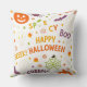Bring cosy spooky vibes to your home with this adorable Halloween throw pillow! Featuring a cheerful all-over pattern of smiling pumpkins, friendly skulls, spiderwebs, candy, stars, and fun phrases like “Trick or Treat?”, “Spooky”, “Creepy”, and “Happy Halloween”, this pillow adds a playful seasonal touch to any space.