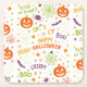 Protect your surfaces in spooky style with this adorable Halloween paper coaster! Featuring a bright and playful pattern of smiling pumpkins, friendly skulls, spiderwebs, candy, stars, and fun phrases like “Trick or Treat?”, “Spooky”, “Creepy”, and “Happy Halloween”, this coaster is perfect for Halloween parties, fall gatherings, and seasonal entertaining.