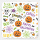 Add some spooky charm to your Halloween season with this adorable and colourful sticker! Featuring cheerful pumpkins, friendly skulls, spiderwebs, stars, candy, and playful Halloween words like “Spooky”, “Trick or Treat?”, “Creepy”, and “Happy Halloween”, this design is perfect for kids and adults alike.
