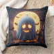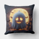 A charming illustration of a ghost amid a graveyard at night, surrounded by flying bats and illuminated by the glowing light of a full moon, evoking a spooky Halloween atmosphere.