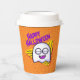 Decorate your spooktacular Halloween party with these party cups featuring a cute ghost character, bright orange background, and retro 90's inspired design elements. Text includes the phrase "Happy Halloween" and "Boo!" to add an extra bit of Halloween flair. Perfect for any kid's Halloween party, birthday party, or fun event.
