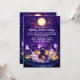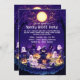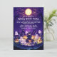 The back of the invitation carries the same cute night scene with purple hues, ghosts, pumpkins, and the moon, tying the entire design together. This invitation is perfect for a children’s Halloween party, blending a fun, spooky theme with friendly and welcoming visuals.