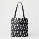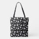 Carry a bit of Halloween spirit with this tote bag featuring a bold black background decorated with simple white ghost silhouettes in varying sizes. The minimal black and white design adds a modern touch to a festive and playful pattern.