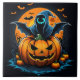 Spooky ghost rising from a carved pumpkin at night ceramic tile