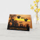Halloween card featuring an image with black silhouettes of spooky ghosts, bats, tombstone, spider, creepy tree and more on Halloween night. Select from matte or glossy style card.