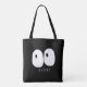 Spooky Googly Eye Modern Monogram Custom Halloween Tote Bag, design features "Googly Eye" in white. Personalise the custom monogram with an individual name or family name.