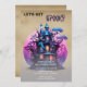 Set the tone for a thrilling night with this eerie and magical Halloween party invitation. A shadowy blue haunted house looms beneath a misty, purple moonlit sky. The bold phrase “Let’s Get Spooky,” written in an elaborate gothic font, enhances the dark and mysterious atmosphere. Ideal for sending chills down your guests’ spines, this invitation is perfect for inviting friends to a costume-filled, bone-rattling celebration they won't forget.